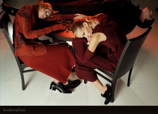 Журнал NRG. 2000/01. Декабрь-Январь. "С ног на голову". Каждый новый день меняет наши представления о дне вчерашнем. То, что казалось единственно-верным, оказывается смешным и надуманным, а положение вниз головой неожиданно расширяет горизонты сознания и открывает дверь в манящее зазеркалье. Фотограф: Владимир Кураков. Стиль: Оксана Гурьева. Причёски и макияж: Юлия Захарова. Модели: Никита Карпова, Катя Синикова агентство Modus Vivendis, Михаил Зак. | |