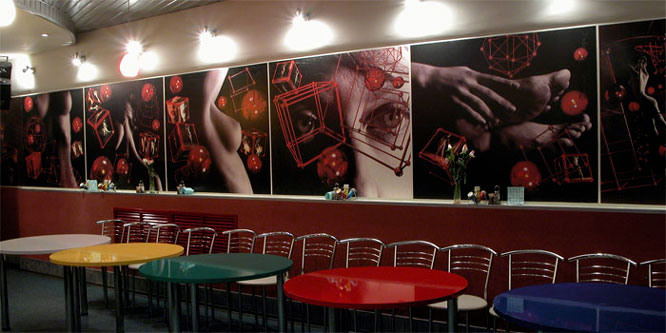Клиент: ассоциация многопрофильных предприятий БАШ. Мини-кафе в здании своего офиса, для проведения корпоративных мероприятий. Дизайнеры: Жанна Ашакова, Константин Андреев. Фотограф: Владимир Кураков. 3D-графика: Александр Шевченко. Димитровград. 2004 | |